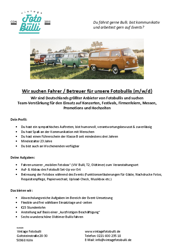 Wir suchen Fahrer / Betreuer für unsere Fotobullis (m/w/d)