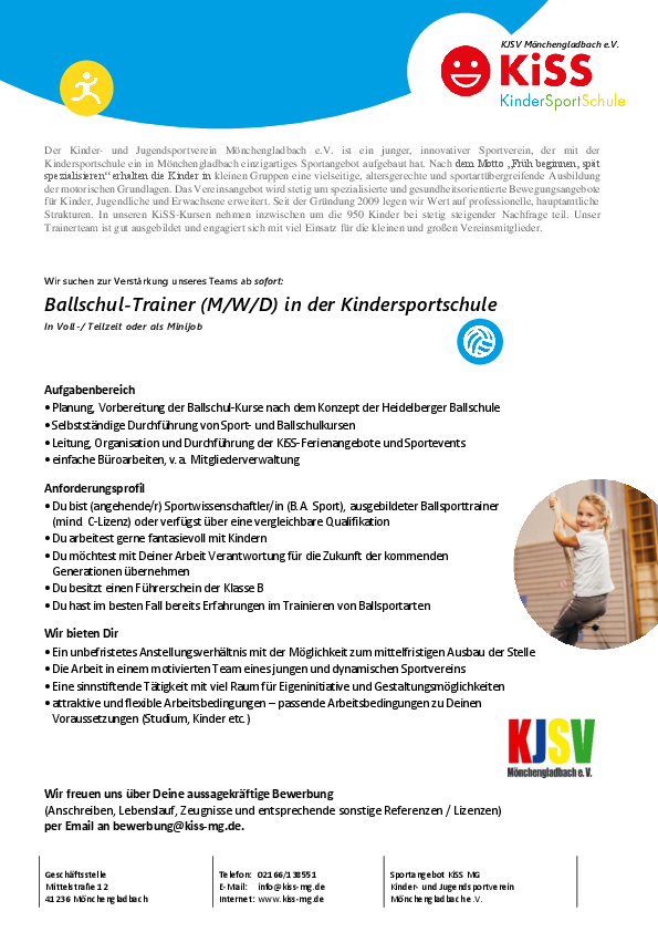 Weitere Jobangebote von Kinder- und Jugendsportverein Mönchengladbach e.V.
