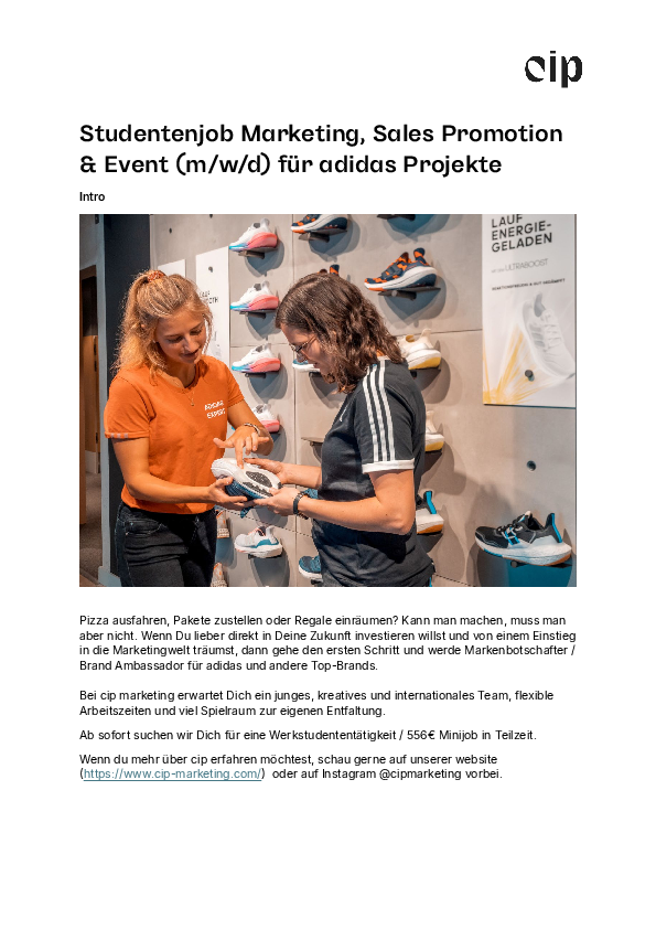 Studentenjob Marketing, Sales Promotion & Event (m/w/d) für adidas Projekte