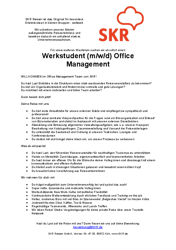 SKR Reisen GmbH, Venloer Str. 47-53, 50672 Köln, www.SKR.de