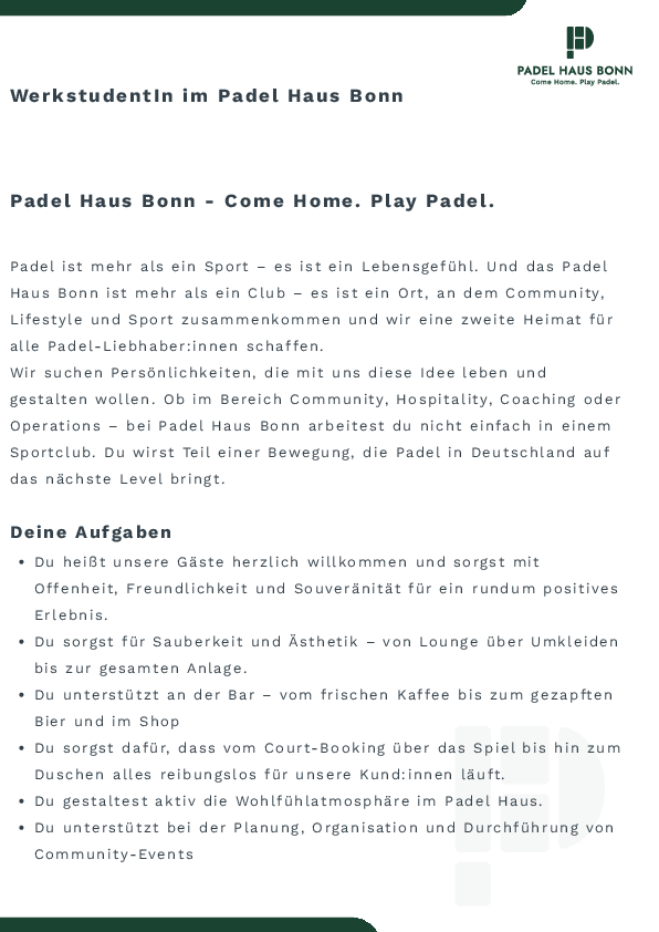 WerkstundentIn Padel Haus Bonn