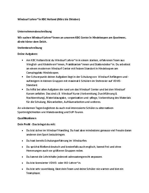 Windsurf Lehrer*in KBC Holland (März bis Oktober 2026)