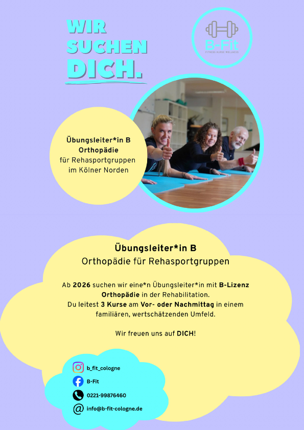 Wir suchen eine zuverlässige engagierte Übungsleiter/-in B in Orthopädie.