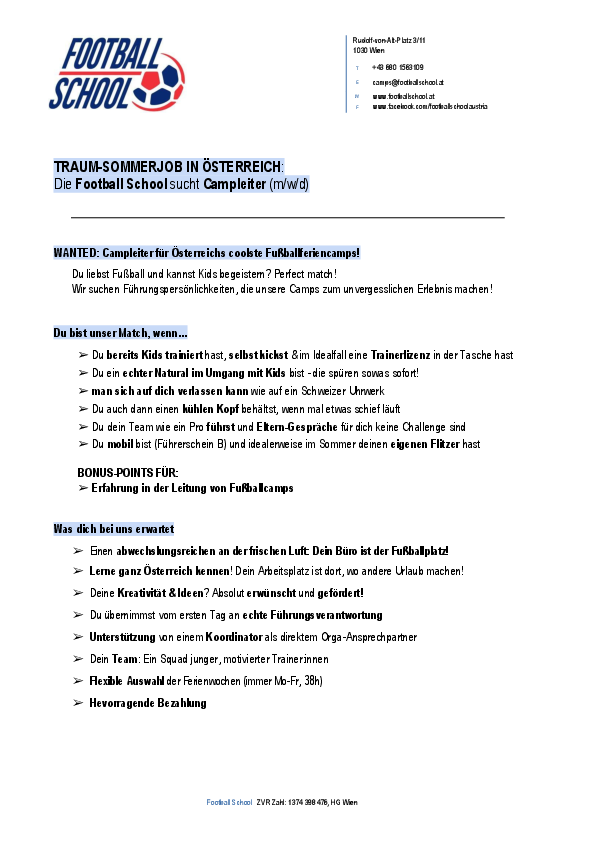 WANTED: Campleiter für Österreichs coolste Fußballferiencamps!