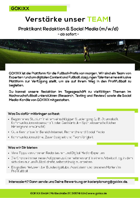 Interesse? Dann bewirb Dich unter kaderplanung@gokixx.de