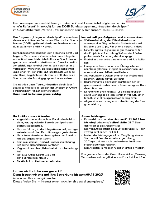 Dieses finden Sie im Internet unter: www.lsv-sh.de/stellenangebote/