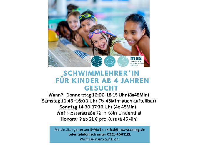 Das mas-Institut in Kön Lindenthal sucht SchwimmLehrer*innen
