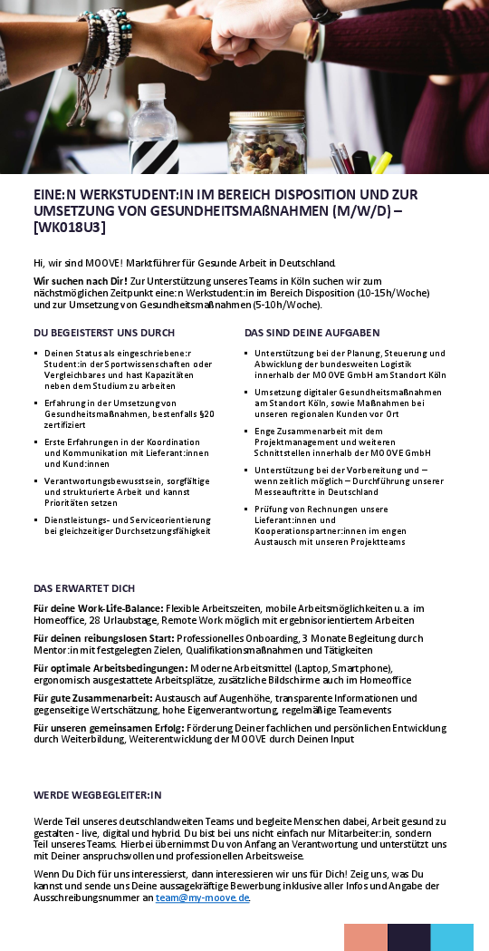 Hi, wir sind MOOVE! Marktführer für Gesunde Arbeit in Deutschland.