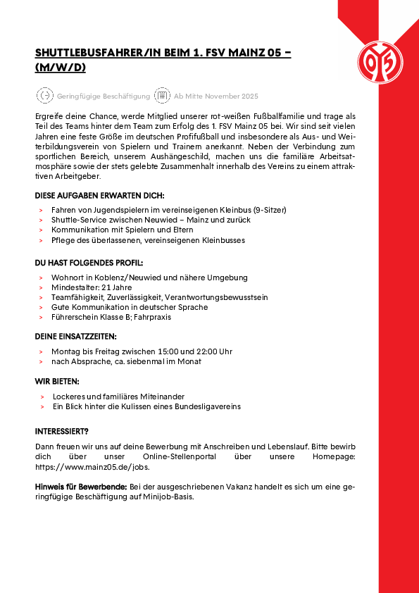 Shuttlebusfahrer/In beim 1. FSV Mainz 05 (m/w/d)