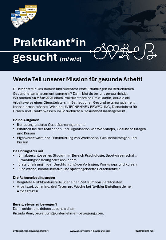 Ab März 2026: bezahltes Praktikum im BGM - Schwerpunkt Qualitätsmanagement