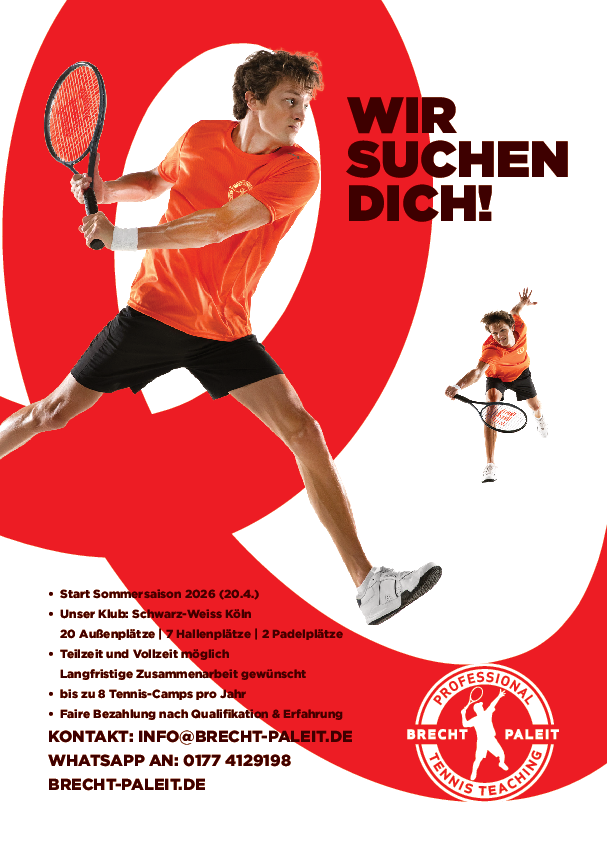Lust auf einer der schönsten Sportanlagen Kölns zu arbeiten? Bock auf Tennis & Teamspirit?