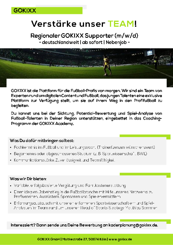 Interesse? Dann bewirb Dich unter kaderplanung@gokixx.de