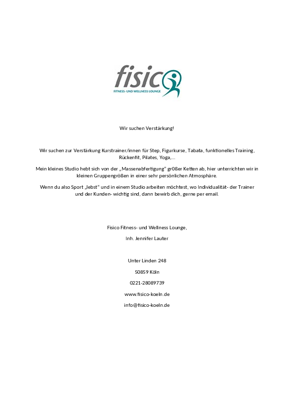 | Anbieter | Fisico Fitness- und Wellness Lounge |
