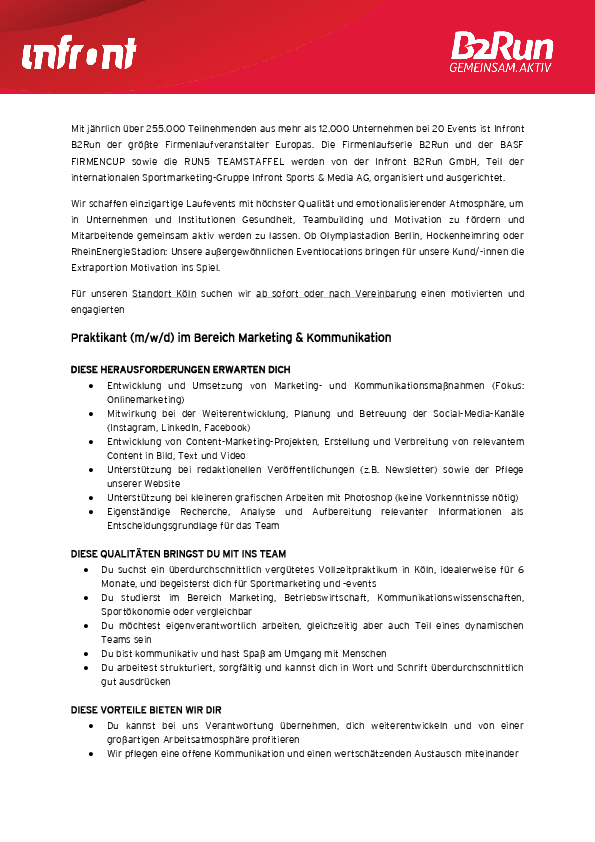 Praktikant (m/w/d) im Bereich Marketing & Kommunikation bei B2Run