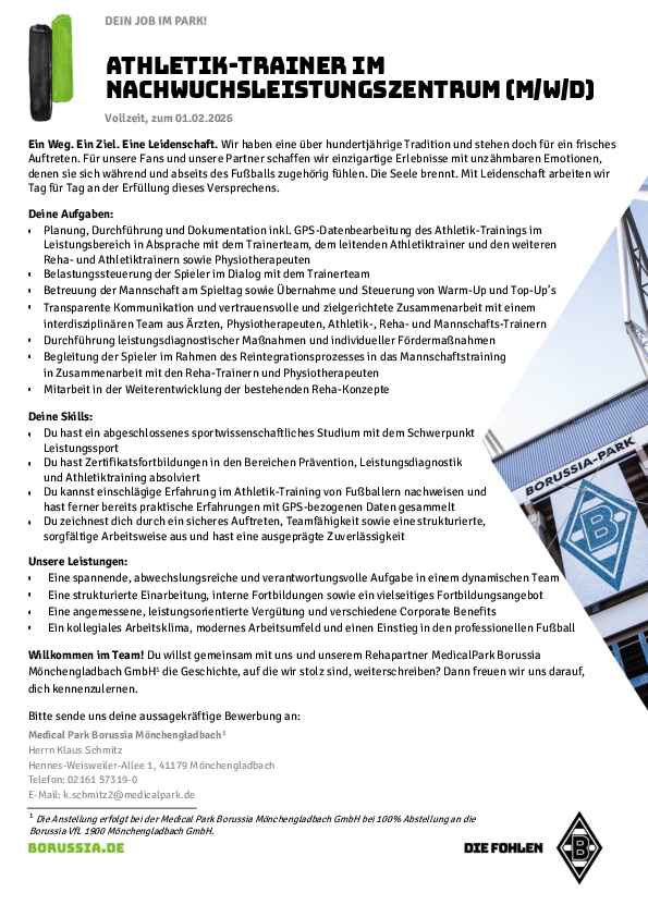 Athletiktrainer*in NLZ Borussia Mönchengladbach
