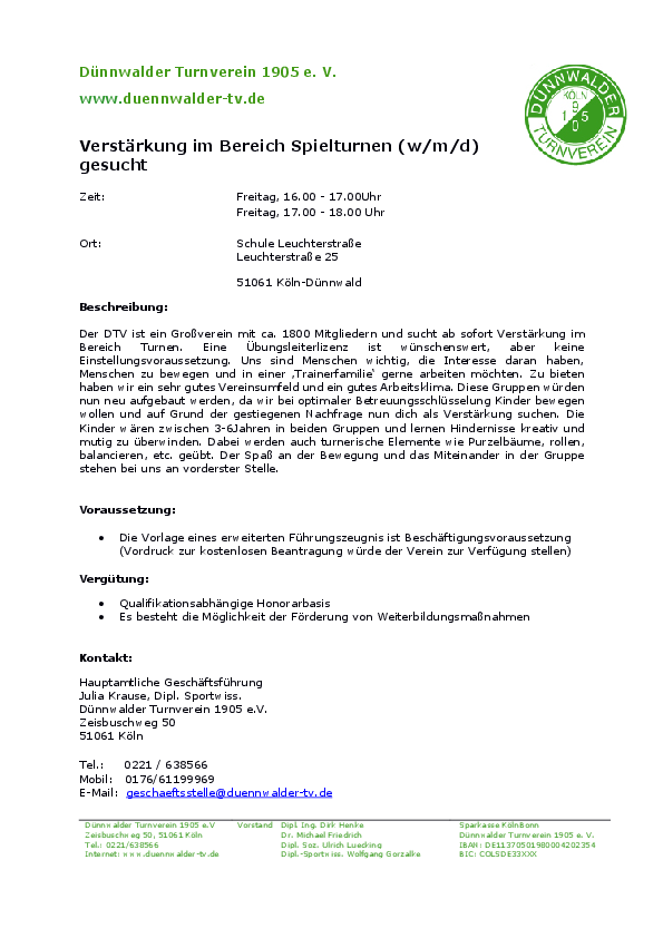 | Anbieter | Dünnwalder Turnverein 1905 e. V. |