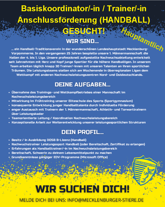 Basiskoordinator/-in / Trainer/-in Anschlussförderung (HANDBALL)