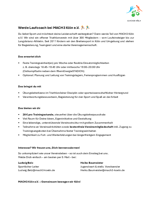 Werde Laufcoach bei MACH3 Köln e.V. ????♀️????♂️
