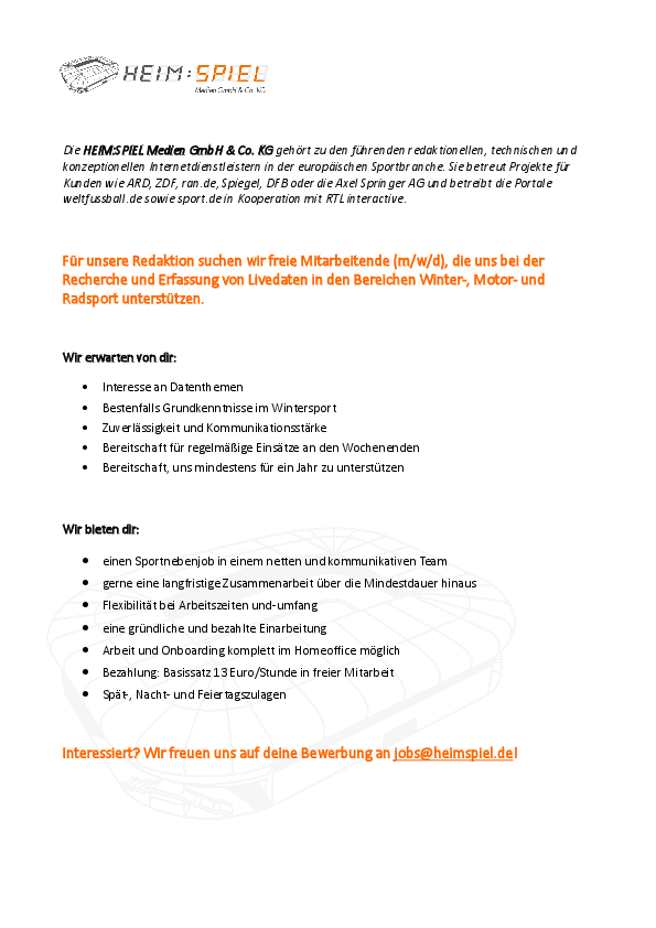 Sportredaktion: Freie Mitarbeit in der Livedaten-Erfassung (m/w/d)