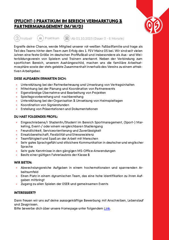 Weitere Jobangebote von 1. FSV Mainz 05 e.V.