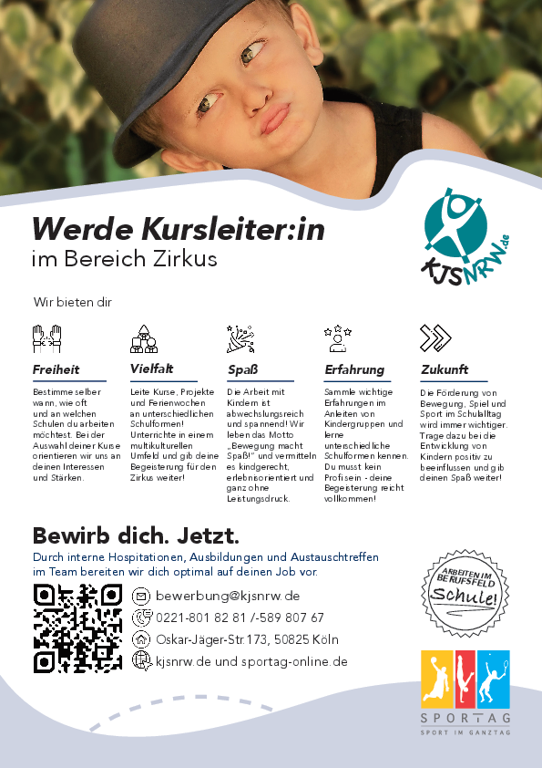 Die Förderung von Bewegung, Spiel und Sport im Schulalltag wird immer wichtiger. Trage dazu bei die Entwicklung von Kindern positiv zu beeinflussen - und gebe deinen Spaß am Zirkus weiter!