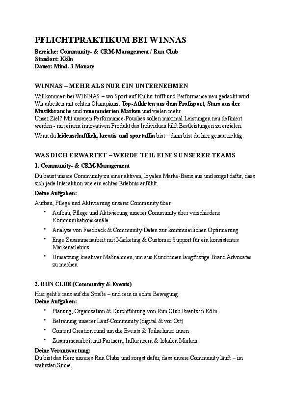 Bereiche: Community- & CRM-Management / Run Club Standort: Köln Dauer: Mind. 3 Monate