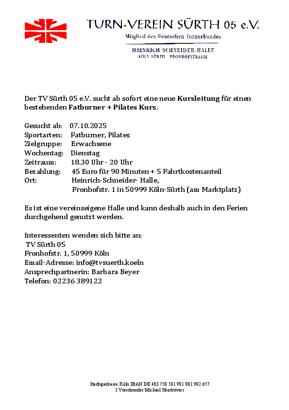 Kontakt: Barbara Beyer info@tvsuerth.koeln