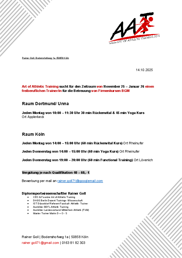 Bewerbung an rainer.goll71@googlemail.com