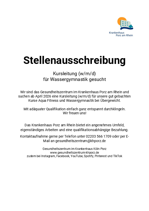 | Anbieter | Gesundheitszentrum im Krankenhaus Köln-Porz |