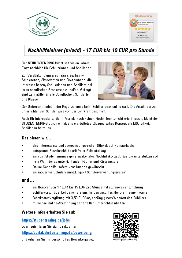 •ein vom Studentenring eigens erarbeitetes Nachhilfekonzept, das Sie unterstützen soll