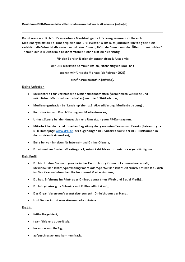 Bewirb Dich gerne bis zum 16. November 2025 über unsere Jobbörse (https://dfb.jobs.personio.de/).