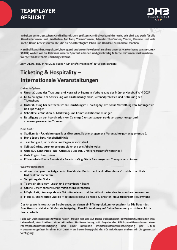 - Praktikant*in Spielbetrieb (m/w/d), Deutscher Handballbund e.V.
