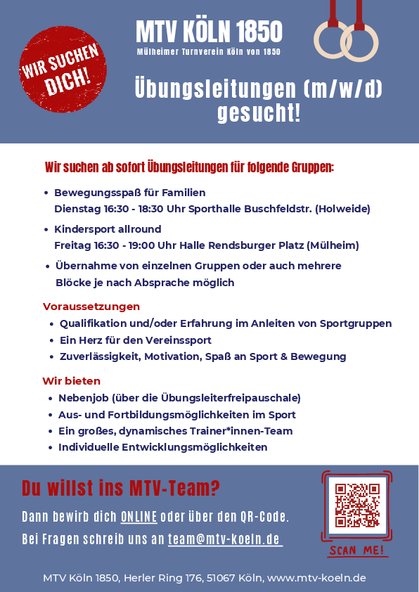 MTV Köln sucht Übungsleitungen