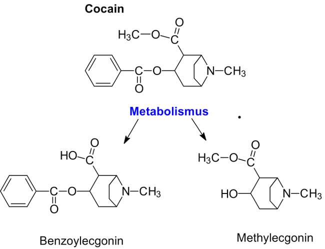 Cocain kann wie alle übrigen Stimulanzien sehr gut in Urinproben nachgewiesen werden. Darüber hinaus sind die Cocain-Metaboliten Benzoylecognin und Methylecognin, die im Stoffwechsel durch Hydrolyse entstehen, ebenfalls sehr gut detektierbar.