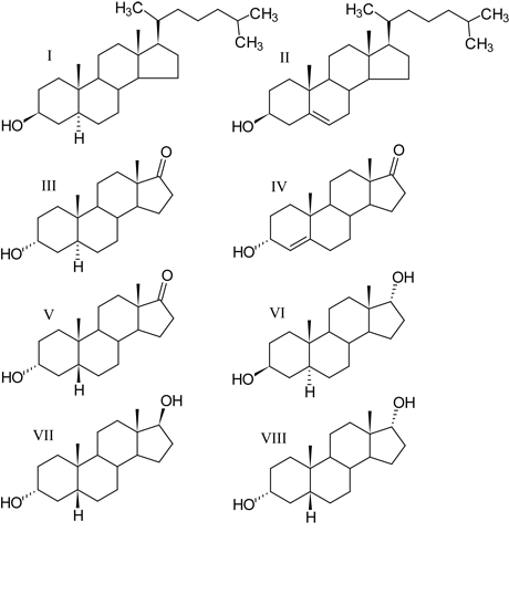 Beim Dopingnachweis von endogenen Steroiden aus Urinproben wird nach Auffälligkeiten im Steroidprofil bei erhöhten Testosteron/Epitestosteron Quotienten und bei erhöhten Konzentrationen der Steroide Androsteron, Etiocholanolon, Testosteron und Epitestosteron eine isotopenmassenspektrometrische Analyse der Steroide vorgenommen. Dabei werden als Zielanalyten Androsteron (III), Etiocholanolon (V), 5α-Androstandiol und 5ß-Androstandiol (VII) als auch Testosteron analysiert.