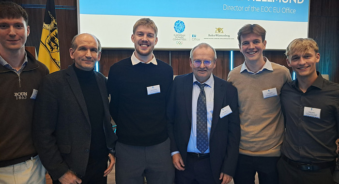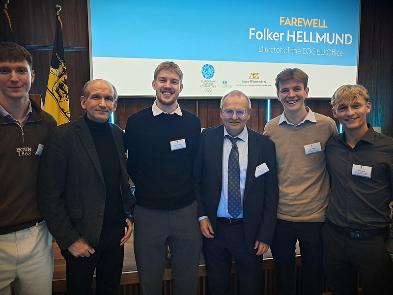 Ein besonderer Moment des Abends war die Ehrung von Folker Hellmund, dem langjährigen Leiter des EOC-EU-Büros, der Anfang 2026, nach fast zwei Jahrzehnten im Dienst des Europäischen Olympischen Komitees (EOC), in den Ruhestand verabschiedet wird. Die Versammelten würdigten sein Engagement und seinen maßgeblichen Einfluss auf die Sportpolitik in Europa. Aus diesem Anlass wird Folker Hellmund am 28. Januar2026 im Rahmen einer Veranstaltung an der DSHS in Köln eine Abschiedsrede mit Rückblicken zur Sportpolitik der letzten 20 Jahre halten.