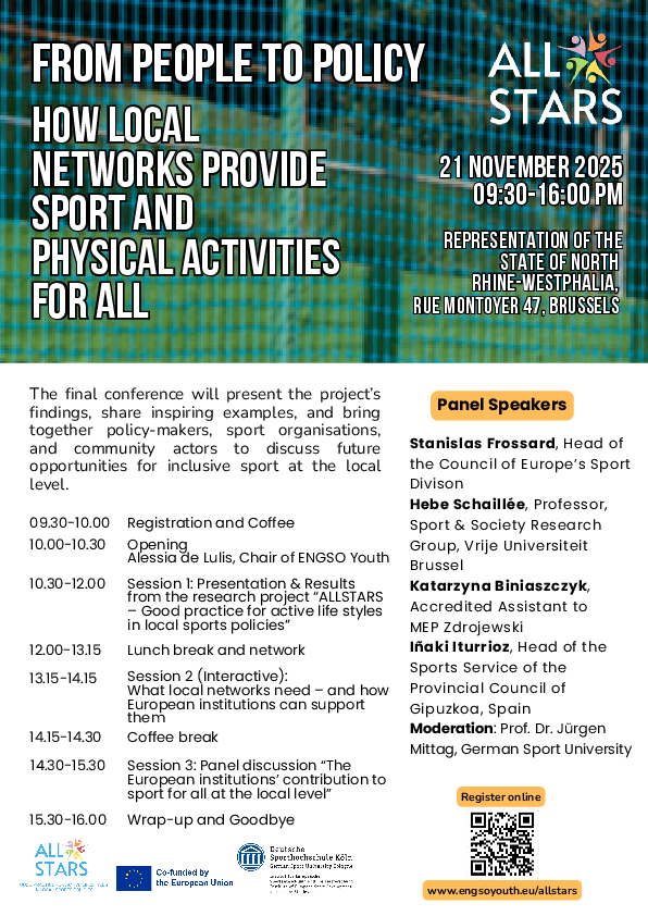 Das AllStars-Projekt hat sich der Identifizierung und Analyse erfolgreicher lokaler Sportpolitiken gewidmet, die Inklusion und einen aktiven Lebensstil fördern. Ziel war es zu untersuchen, wie lokale Initiativen und Governance-Strukturen die Teilnahme am Sport verbessern können.