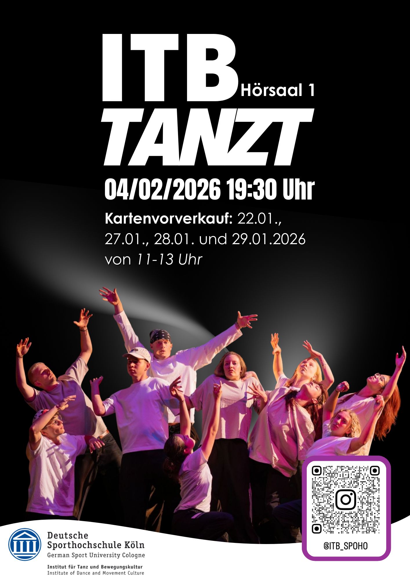 Das Institut für Tanz und Bewegungskultur (kurz: ITB) schreibt Vielfalt groß. Von klassischem Paartanz, über urbanen Hip Hop bis hin zu experimentellem Bewegungstheater. Die Semesterabschlussaufführungen der Studierenden bieten Ihnen genau das und Sie sind alle herzlich eingeladen, hier an der Sporthochschule dabei zu sein.