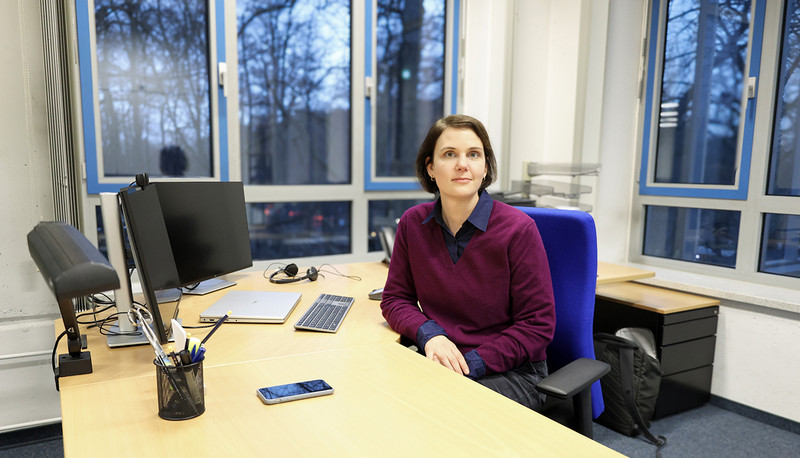 Von ihrem Büro aus blickt sie direkt in den Gruppenarbeitsraum der Bibliothek – einen Ort, an dem man sich trifft, austauscht, gemeinsam lernt und Wissen generiert. Die Bibliothek sei längst viel mehr als ein stiller Ort, an dem man Bücher ausleiht. „Bibliotheken haben sich in den letzten Jahrzehnten grundlegend gewandelt. Sie sind zu Treffpunkten geworden und stellen ihre Inhalte zunehmend digital und ortsungebunden zur Verfügung“, sagt Dudek und ergänzt: „Bibliotheken sind kompetente Ansprechpartnerinnen für die Literaturrecherche und -verwaltung. Sie vermitteln neue Technologien und sind durch die Transformation des wissenschaftlichen Publizierens, die Digitalisierung der Wissenschaft und den Open-Science-Gedanken zu wichtigen Unterstützerinnen der Forschung geworden.“