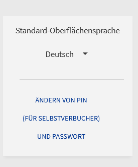 Passwort und PIN können Sie im Benutzerkonto > Persönliche Details > Ändern von PIN (für Selbstverbucher) und Passwort ändern.