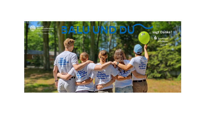 Die Deutsche Sporthochschule Köln bedankt sich herzlich bei hiermitherz der Sparkasse KölnBonn für die Unterstützung des Mentoringprogramms „Balu und Du“. Mit der Spende wird das Engagement unserer Studierenden und jungen Mitarbeiter*innen gefördert, die als Mentor*innen („Balus“) Kinder im Grundschulalter („Moglis“) begleiten.